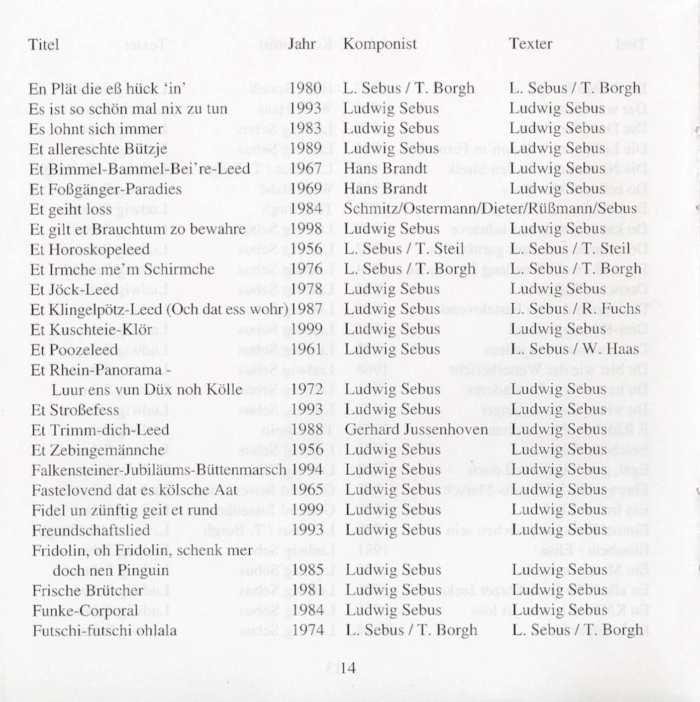 Alle Lieder von Ludwig Sebus